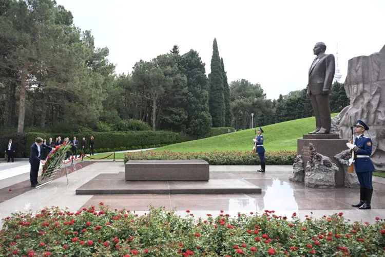 Sonra qonaqlar Şəhidlər xiyabanına gələrək ölkəmizin azadlığı və ərazi bütövlüyü uğrunda canlarından keçmiş qəhrəman Azərbaycan övladlarının xatirəsinə hörmət və ehtiramlarını bildirib, “Əbədi məşəl” abidəsinin önünə əklil qoyublar.