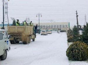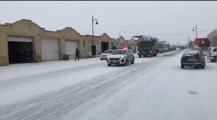 Polis əməkdaşları yollara qum-çınqıl və duz səpilməsini təmin edərək sürücülərin təhlükəsiz hərəkəti üçün şərait yaradıblar.