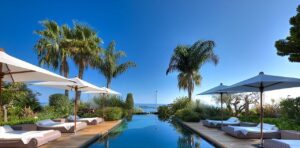 2 600 m² torpaq sahəsi var, ətrafı tamamilə ağaclarla örtülüdür. Villanın hovuzu vizual olaraq dənizlə birləşir, üfüqi sonsuzluq lüks villalarda ən arzu olunan hovuz növüdür.